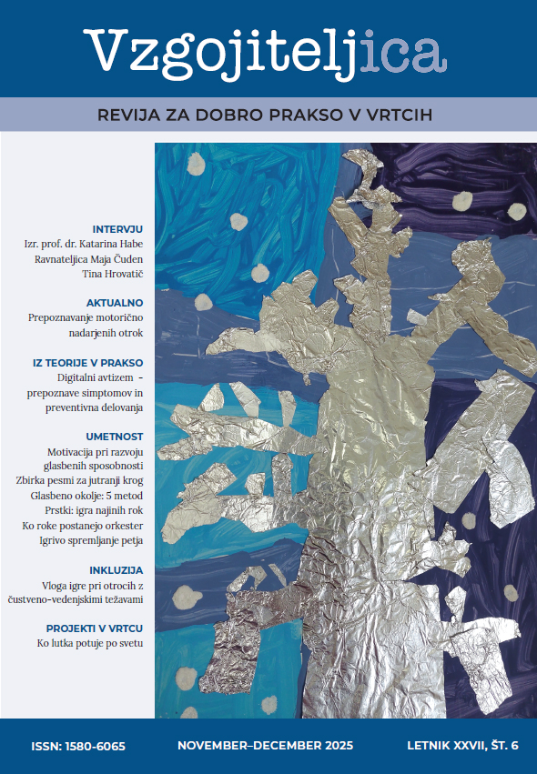 Jesensko-zimska Vzgojiteljica prinaša vsebine, ki jih lahko že jutri prenesete v oddelke. Uvodni pogovor z ravnateljico Majo Čuden (Vrtec Ig) odpira vprašanje, kako skupna vizija, jasne vrednote in kultura sodelovanja gradijo stabilen kolektiv ter varno, spodbudno okolje za otroke in strokovne delavce. Sledi prispevek o prepoznavanju motorično nadarjenih otrok z motoričnimi preizkusi in o tem, kako rezultate smiselno uporabiti pri načrtovanju dejavnosti.